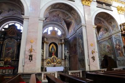 外見的な特徴は青いドームくらいで、パッと見は地味な建物です。ですが、中に入ると物凄く豪華な装飾で飾られています。全般的に絵画とバロック装飾で飾られていて、首都の大聖堂に相応しい大変に立派な教会です。ちょっと言葉では説明し難いので、一緒に投稿した写真をご覧ください。リュブリャナに行かれたら是非訪問されることをお勧めします。なお、入口の青銅のドアはローマ法王訪問を記念して作られたもので、スロベニアの歴史を表現しているとのことです。お見逃し無く。- 旅行時期
