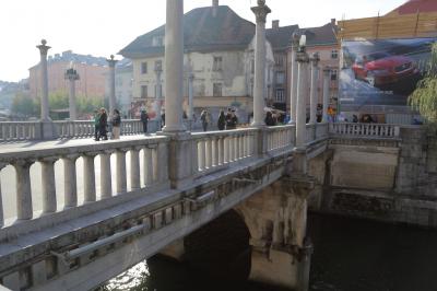 リュブリャナ観光の中心に位置している橋です。ここから西に行ってスロヴェンスカ通りを渡ると美術館や博物館が沢山あるエリアですし、東にはリュブリャナ城と大聖堂、南へ行くと野外劇場があります。ここからリュブリャニツァ川のボートクルーズも発着してますし、観光の中心地と言っても過言では無いと思います。