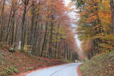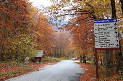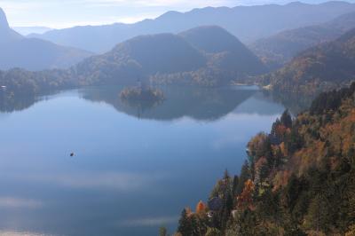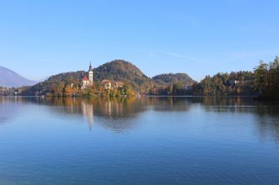 ポストイナ鍾乳洞と並ぶ、スロベニア屈指の観光地でしょう。10/24の紅葉シーズンに訪問したので、あまり人は居ないかな、と思っていたのですが、そんなことは無くかなりの人出でした。夏のバカンスシーズンになるともっと凄いのでしょうね。行き方は何通りかありますが、リュブリャナからだとバスでも鉄道でも行けます。私はBohinj Zlatorog息のバスに乗っていきました。Bledがバスターミナルになっているので、そこで降りて坂を下れば湖に出ます。