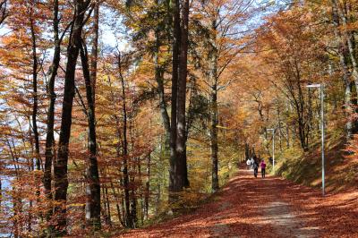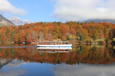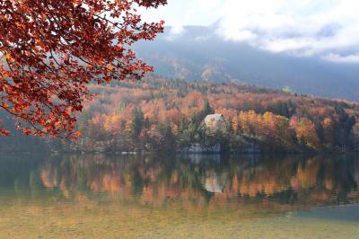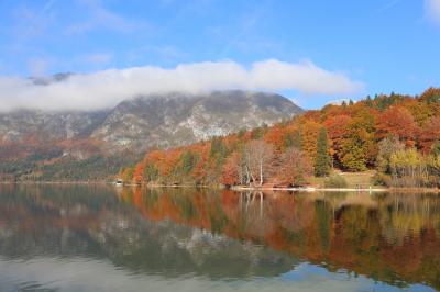 紅葉を目当てに10/24に訪問したのですが、ちょうど真っ盛りで、透明な湖とオレンジ色の紅葉、ユリアンアルプス、青空の組み合わせを見ることが出来、心が洗われるようでした。こちらにはミステリの女王と称されたアガサ・クリスティもよく訪れていたそうで、美しい光景に魅せられていたとのことです。美しすぎて自分のミステリの舞台には出来ない、と言ったとか。こちらの景色は私の言葉では表現できないので、一緒に投稿した写真をご覧ください。
