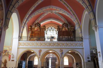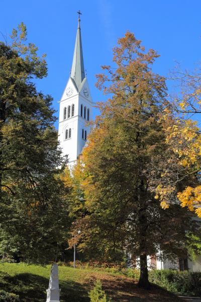 教会自体は15世紀からあるようですが、20世紀になってから建て直されたとのことで、非常に綺麗です。外見も白一色なので、湖畔の木々に映え、美しい景色を作り出しています。内部はそれほど広くは無く、凝った装飾もありませんが、壁一面にフレスコ画が描かれているので華やかな印象です。また、ブレッド湖といえば聖母被昇天教会が有名な所為でしょうか、こちらにはほとんど人が居ません。私が訪ねたときも誰も居らず、ひっそりとしていました。ツアーなどでは訪れない場所なのでしょうが、気持ちの良い教会なので、ブレッド湖に訪れた際に時間があれば足を伸ばしてみてください。- 旅行時期