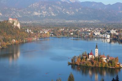 アルプスの瞳と形容されるだけあり、非常に美しい景勝地です。岸辺に大型ホテルなども建っていますが、それほど景観の邪魔にはなっていません。岸辺には遊歩道が作られていて、一周するのにのんびり歩いても3時間はかからないでしょう。ただ、遊歩道からの眺めはそれほど良くありません。結構木が邪魔をして、湖面を見渡せる場所は限られています。湖の東西の岸辺と、南側の一部に限られます。あと、ブレッド城から眺めることを勧めている方も多いですが、全景を一目で見られないので、個人的にはお勧めではありません。私のお勧めはOJSTRICAからの眺めです。OJSTRICAからなら、何の障害物も無くブレッド湖全体が一望できます。15分から20分程度ハイキングコースを歩くことになりますが、最後の岩場を除けばそれほど道も悪くないので、お勧めです。OJSTRICAの場所は観光案内所で聞けば教えてくれます。特にそちらで聞かなくても、湖の南西のあたりの遊歩道を歩きながら湖と逆側を見ていれば、『6 OJSTRICA』という看板が立っています。あとは標識に従って進めば良いだけです。