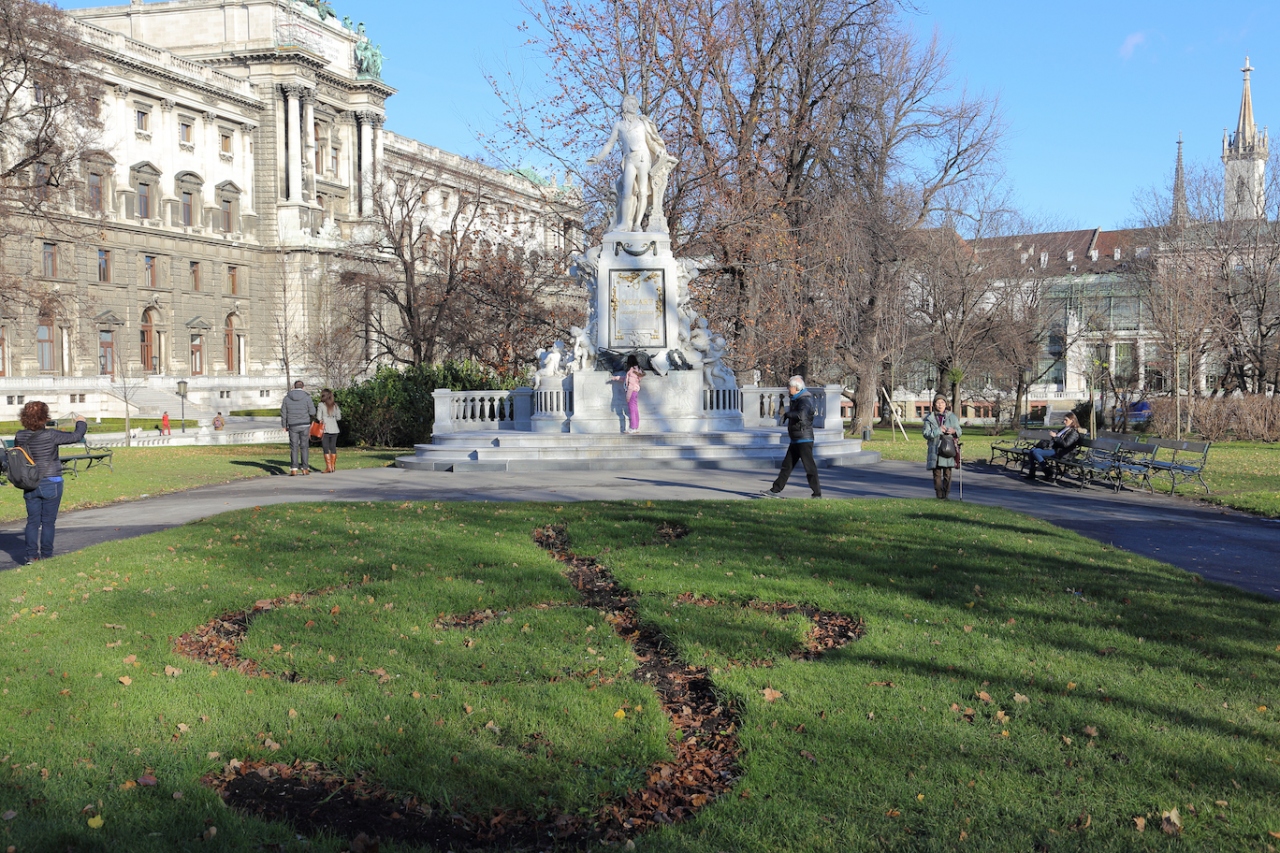 ウィーンの写真や映像で大抵目にする『ト音記号の花壇とモーツァルト像』がありますが、こちらの公園にあります。なので、当然花壇やモーツァルト像は撮影スポットになっていて、人が引っ切り無しに訪れます。私が行ったのは真冬のクリスマスシーズンだったので、当然花は咲いておらず、ト音記号の形で土が剥き出しになっていて寂しい雰囲気でした。それでも撮影は順番待ちだったので、必ずウィーンで行きたい場所、になっているんでしょうね。あと、こちらの公園はモーツァルト像で有名ですが、フランツ・ヨーゼフ1世の銅像もあります。ただ、モーツァルトの影に隠れてしまっているためか、俯き加減で少々寂しげに感じました。- 旅行時期