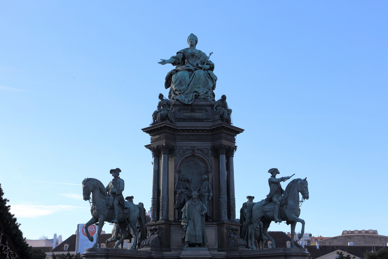 美術史美術館と自然史博物館に囲まれた広場なので、普段から観光客で一杯だと思いますが、私が行った時期はクリスマスマーケットが開かれていたので、地元の人や観光客が入り混じり、凄く賑やかでした。あと、広場の真ん中に女帝マリア・テレジアの立派な銅像が建っています。ウィーンには銅像が沢山ありますが、英雄広場にあるプリンツ・オイゲンやカール大公の像に匹敵するくらい立派な銅像です。政治家としても優秀だったそうで、今でも慕われているそうですから、当然なのかも知れません。- 旅行時期
