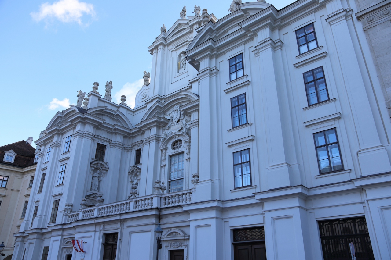 ホーフブルク宮殿の一角にある教会で、国立図書館(プルンクザール)同様にヨーゼフ広場に面して入口があります。なので、行き方は国立図書館(プルンクザール)と一緒です。