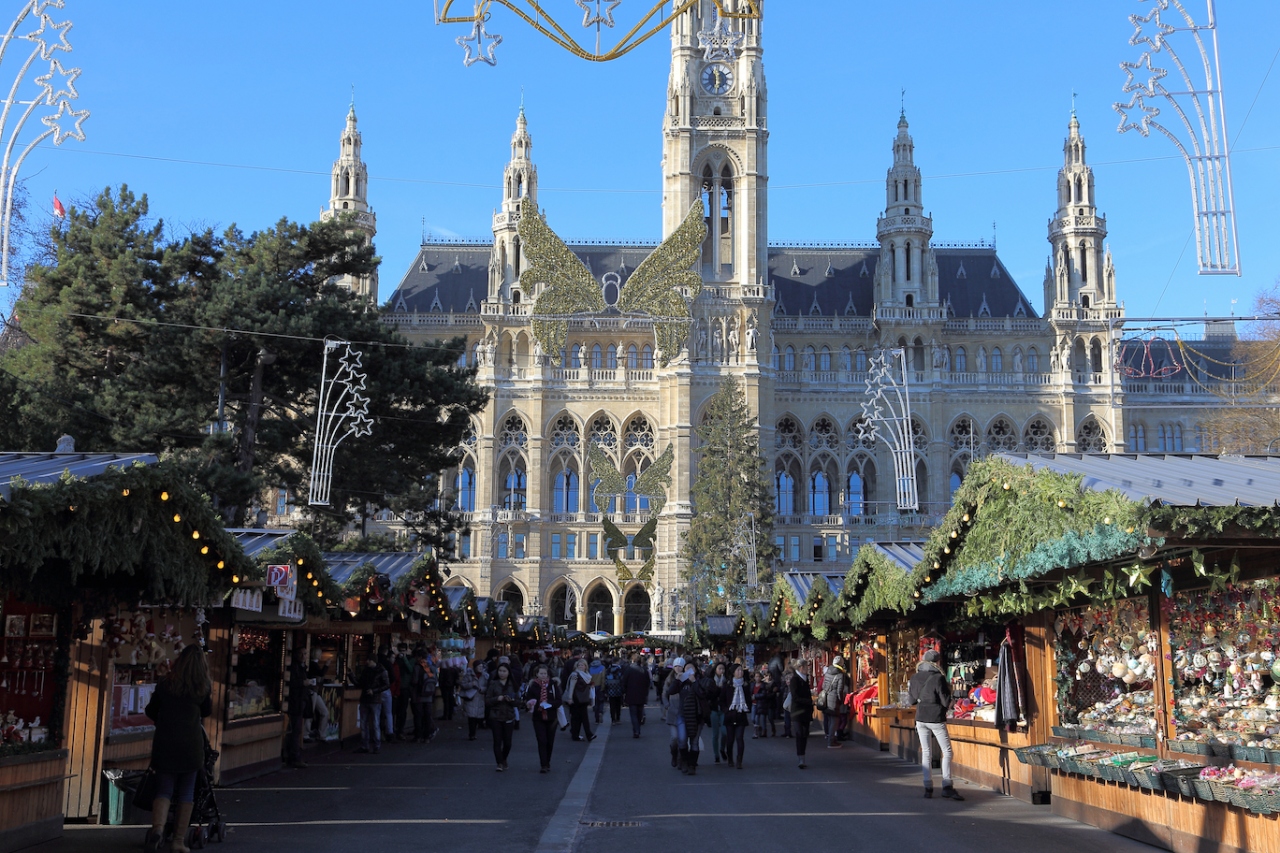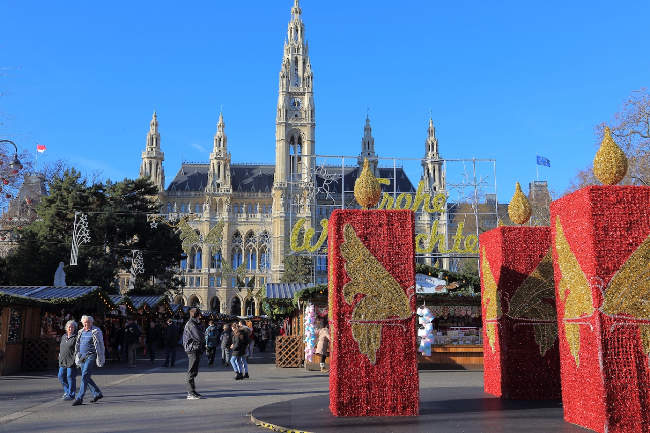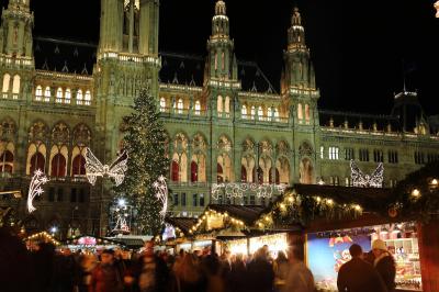 ウィーンの市庁舎前の広場です。普段は市民の憩いの場として利用されていると思うのですが、クリスマス時期はクリスマスマーケットが開かれ、賑やかになります。こちらのクリスマスマーケットがウィーン最大なので、物凄い人出です。他のマーケットが地元民向けにやっているのに比べ、こちらは海外からの団体旅行客も押し寄せて来るからでしょう。実際、私も日本人の団体旅行客から写真撮影を何度も頼まれました。