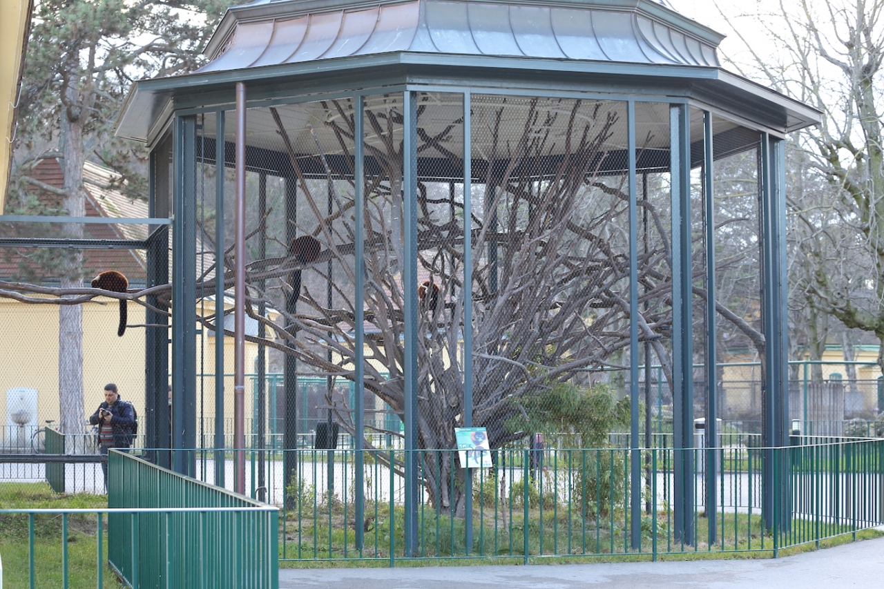 シェーンブルン宮殿の庭園内に設置された動物園です。ネプチューンの噴水に向って右手側に行くと入口があります。マリア・テレジアの旦那が作った小型動物園が原型で、世界最古の動物園だそうです。動物園内には宮殿と同じ塗装を施されたバロック建築の建物が残っていて、宮殿の一部だったんだな、というのが判ります。因みに、その建物はレストランとして営業しています。勿論、大半の建物は現代の建築なので、動物が見難いとか、危険とかいうことはありません。