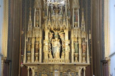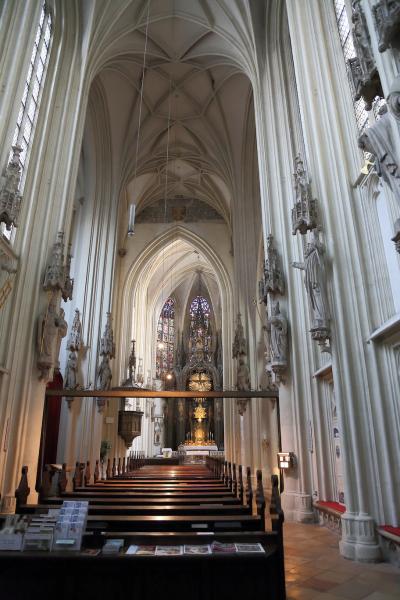 内部も結構シンプルです。白を基調としたゴシック建築なので清潔感はありますが、華美な装飾はほとんど施されていません。ハプスブルク家の婚礼や儀式に使っていたそうなので、バロックでゴテゴテの教会を想像していましたが、随分質素な感じでした。元々はバロック様式の教会だったようですが、ゴシック様式に戻したようです。宮殿の装飾と同じで、質実剛健なものを好む家風だったのかも知れませんね。