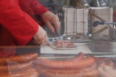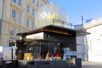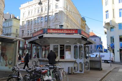 アルベルティーナ美術館やカフェ・モーツァルト、オペラ座に囲まれた小さい広場にあるソーセージスタンドです。オペラ座から見て北西側の広場にあり、ホーフブルク宮殿やアルベルティーナ美術館、オペラ座から流れてくる観光客で何時も行列が出来ているので、オペラ座の裏へ周れば直ぐに場所は判るでしょう。ただ、場所柄なのか、価格は町中にある普通のソーセージスタンドなんかと比べると高めです。