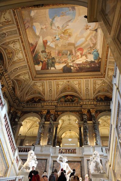 こちらは有難いことに、フラッシュさえ焚かなければ写真撮影自由です。なので、写真好きな方は心行くまで写真を撮りまくれます。ただ、特別展示は写真撮影不可になっています。私が訪問した際はベラスケスの特別展示をやっていて、マルガリータ王女の肖像の写真は撮れませんでした。ですが、ベラスケス以外にもブリューゲル、アルチンボルド、フェルメール、カラヴァッジョなど、著名な画家の作品があちこちに飾ってあり、そういった作品を間近で見て、写真を撮れたので、非常に満足しています。特に、ブリューゲルの作品は美術の教科書などで見たことがあったので、見入ってしまいました。あと、こちらの美術館は建物自体の装飾も芸術品です。実際、クリムトの書いた装飾画もあり、必見です。