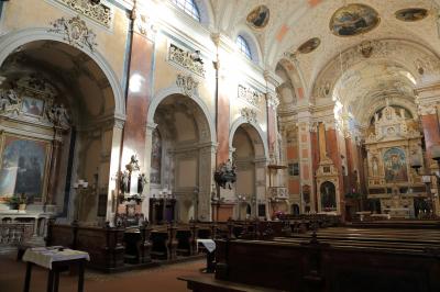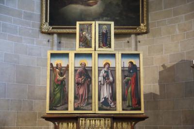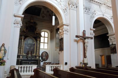 中に入ると判りますが、大げさに曲がっているわけではありません。実際、入口付近から奥の祭壇まで見通せます。ただ、祭壇が真正面からはずれていて、天井とかを見ると曲がっているのが判るので、ああ、曲がっているな、と判る程度です。内部はゴシック様式で、華美な装飾はありません。彫刻が飾られている程度です。観光地としてわざわざ見に行く価値があるか、というと微妙です。近くを通り掛かったら見に行く、程度で十分でしょう。- 旅行時期