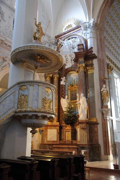 フライウンクの広場に面して建つ教会です。フライウンクのクリスマスマーケットに行った際、立派な建物があるな、と思って見ていましたが、それがこの教会でした。元々、この教会は亡命者を受けいれる役目を担っていたそうで、亡命者から転じて広場の名前を”解放”を意味するフライウンクにしたそうです。