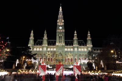 マーケットで売っているものは他のマーケットと大体同じです。ショッピングを楽しむなら、わざわざ混雑しているこちらに来る必要はないでしょう。こちらの特徴はライトアップです。広場全体にイルミネーションが吊るされ、広場入口のモニュメントや市庁舎そのものもライトアップされ、凄く見応えがあります。実際、私がウィーンに行った目的の1つが、このライトアップされたマーケットの写真を撮ることでした。自分の目で見て、写真も撮ることが出来、非常に満足でした。- 旅行時期