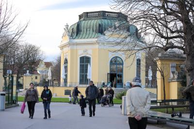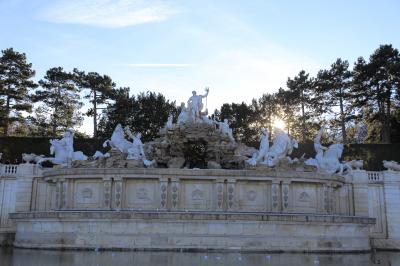 庭園はスケールが半端ではなく、宮殿裏手から丘の上のグロリエッテまでは相当歩きます。ローマ遺跡風のモニュメントや、迷路庭園、日本庭園、動物園など見所満載で、宮殿と合せて全部見ようと思ったら一日掛かりです。私が行ったのはクリスマス時期ですから、残念ながら庭園には花が咲いていませんでした。木立も葉が落ちていて、ちょっと物悲しい雰囲気でした。やはり庭園を楽しむなら、春や夏の花が咲いている時期がベストと思います。ただ、グロリエッテやネプチューンの噴水などの建造物は一見の価値があるので、そこだけを楽しむなら冬場でも問題ないとは思います。グロリエッテは中がカフェになっているのですが、残念ながら私が行ったときは、もう閉店、と入れてもらえませんでした。グロリエッテからは宮殿と庭園、ウィーンの街を一望できます。ここからの眺めは素晴らしいので、是非ご覧になってください。- 旅行時期