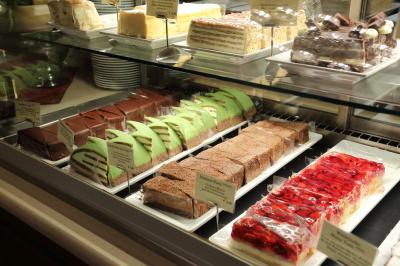 こちらのカフェのレビューを見ると、接客態度が悪い、というのが多いですが、個人的には接客態度が悪いとは感じませんでした。ウェイターに因るのかも知れませんが、店内に入ってウェイターを呼び止めたらきちんと案内してくれましたし、料理が出てくるのも遅くは無かったです。ケーキを注文するときも発音が判らないので、ショーケースの前に一緒に行って貰って指差しで注文しましたが、きちんと対応してくれました。酷い対応をされたのであれば批判的な意見になるのも仕方無いと思いますが、私自身はそのような不快な思いはしませんでした。