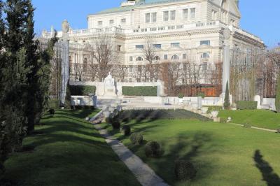 内部は噴水やギリシャ神殿のレプリカが建っていて、遊歩道も整備され、天気が良ければ気持ちの良い散歩が楽しめます。カフェもありますから、ちょっと一休みも出来ます。あと、この庭園の隅の一角にエリーザベト皇后の像がひっそりと建っています。物凄く目立つマリア・テレジア像や、観光名所として有名なモーツァルト像やヨハン・シュトラウス像と比べると、扱いが悪いです。まぁ、ウィーン市民からの人気を反映しているのかも知れませんが。