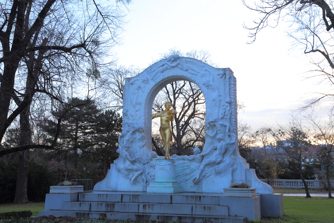 市立公園にある金ピカの彫像です。モーツァルト像と並び、ウィーンで一、二を争うくらいメジャーな彫像でしょう。何処にあるか知らなくても、見たことがある、という人は多いんじゃないでしょうか。