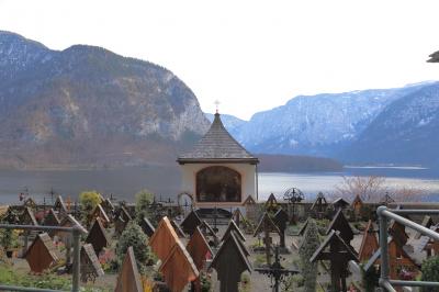 墓地は綺麗に飾られていて、墓地からはハルシュタット湖を望めます。不謹慎ですが、いい所に眠っているなぁ、と思いました。また、墓地から一段高くなっている場所にバインハウスが建っています。このバインハウスには、定期的に墓地から掘り返された人骨が保管されてます。気味の悪い場所ですが、墓地の面積が限られている為、埋葬されてから時間の経った方の遺骨をバインハウスに納め、新たな場所を確保しているのだそうです。