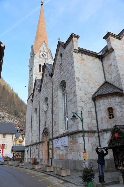 ハルシュタットの船着場の左手側にある教会です。行けば直ぐに判ります。鐘楼が非常に印象的で、個人的にはハルシュタットの美しい景観は、この教会の尖塔のお陰でもあるんじゃないかな、と思っています。