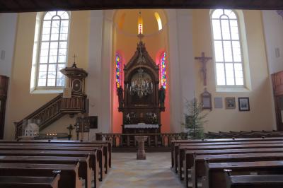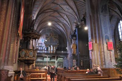 外見は小さな教会ですし、中もそれほど豪華な装飾が施されているわけではありません。田舎の質素な教会、という感じです。ですが、祭壇だけは物凄く豪華です。透かし彫りと絵画を組み合わせた形になっていて、キリストの誕生や洗礼、受難、復活などが表現されています。きっと、これを見ればキリストの生涯がわかるようになっているのでしょうね。これを見るだけでも来る価値があると思います。- 旅行時期