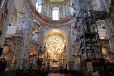 こちらの教会がどれくらい豪華絢爛かは一緒に投稿した写真をご覧ください。全体に施されたフレスコ画や彫刻、大理石の柱など、これでもかという位に豪華です。ですが、こちらの教会が珍しいのは天井画の修復の時に使われたエレベーターが、そのまま残されていることです。少なくとも私が訪問したときにはありました。修復に掛かったお金が集まったら撤去するそうなので、まだあるかどうかは不明ですが。一般の方も料金を払えば、エレベータにのって天井付近まで行くことが出来ました。そこからは階段を登り、ドームの突端に描かれた絵まで間近で鑑賞することができました。もし今でもエレベーターが残っているなら、中々出来ない体験だと思いますので、是非上ってみてください。- 旅行時期