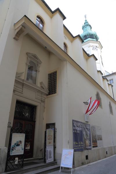 ケルントナー通りからアンナガッセに入り、ちょっと歩くとある教会です。完全に周りの建物に溶け込んでいるので判り難いかもしれませんが、バーガーキングの先にあるので、バーガーキングを目印にすると良いかも知れません。因みに、アンナガッセはアストリアホテルとEMIミュージックストアのある角から、リンクの外に向かって伸びるとおりです。