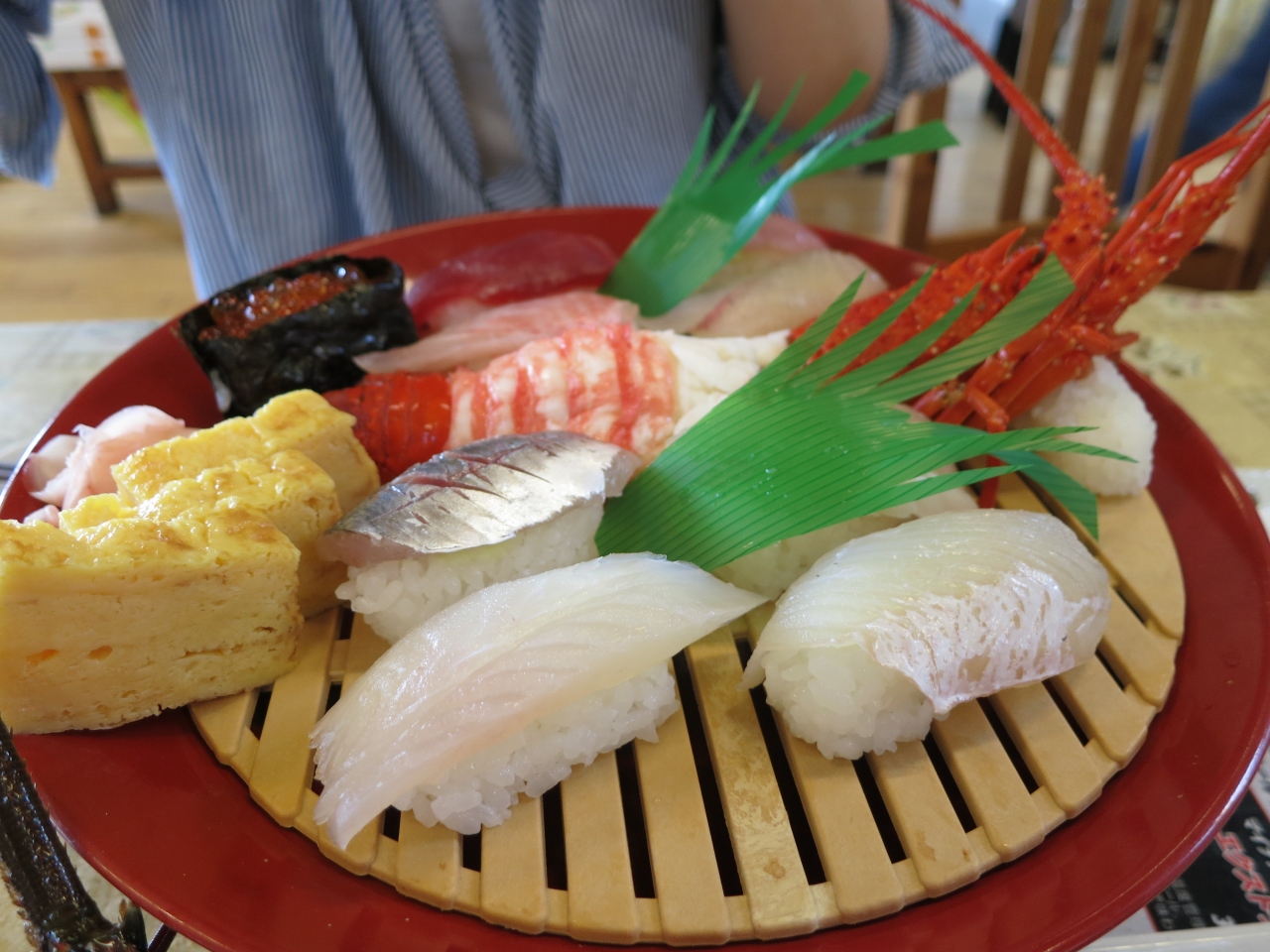 伊勢海老はグラム単位で値段が変わるとのこと。100グラム1000円単位だったので300グラムで。煮鮑と寿司も注文した。