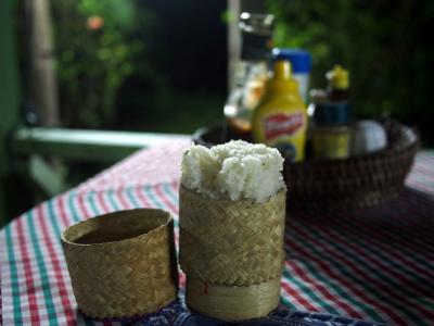 そしてもちろんごはんも ・カオニャオもち米のおこわだおこわ専用の籠には...