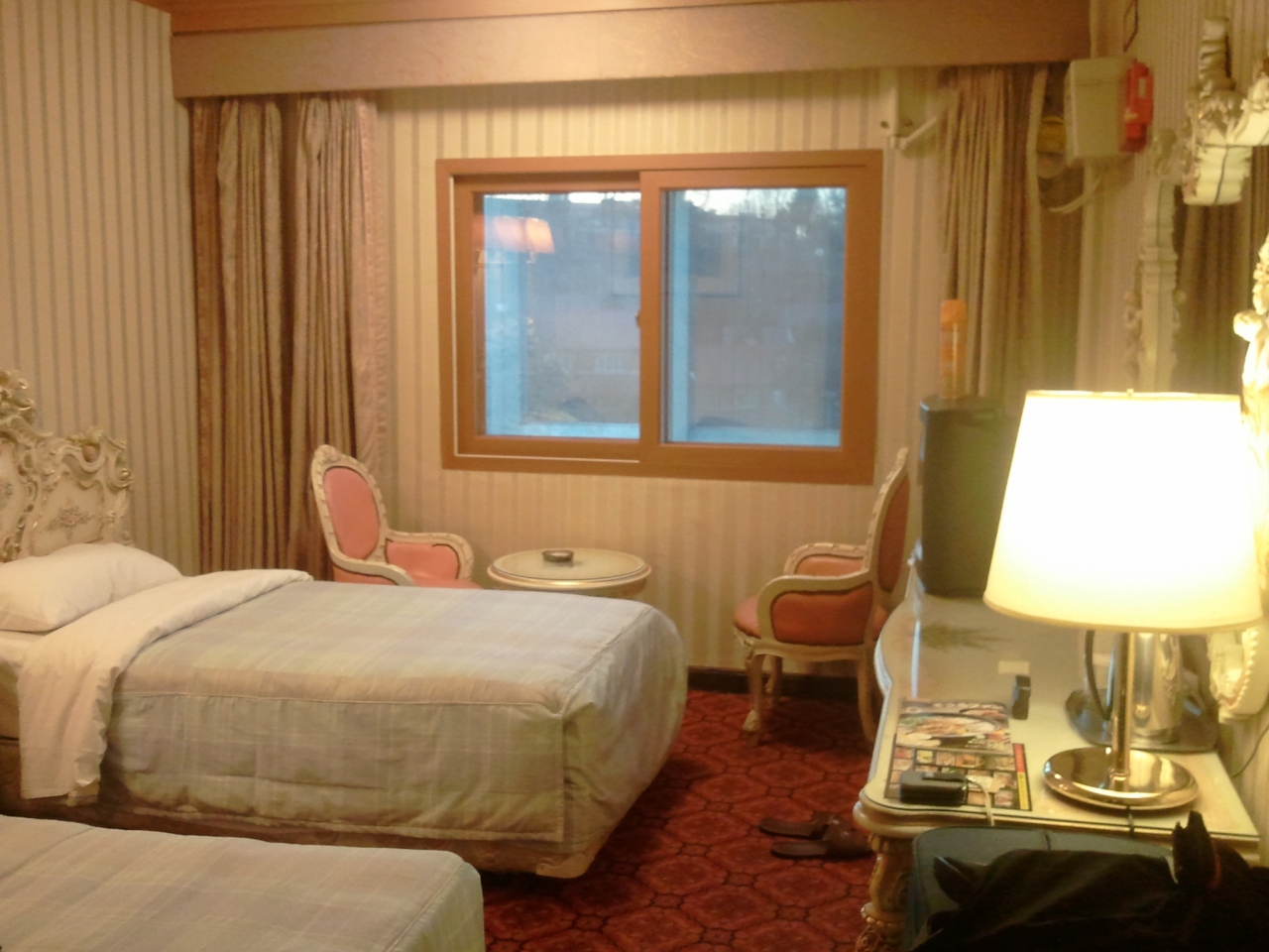 部屋は…、古~い時代遅れの感じでしたが、特に困ることはありません。歯ブラシ・シャンプーはありません。バスマットもありません。冷蔵庫はあります。湯沸しポットはありません。テレビは、NHKが見られました。