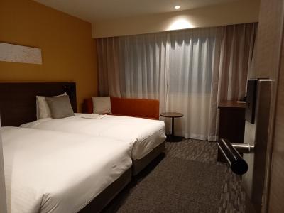 繁華街のど真ん中という感じの立地です。フロントは5階にあり、1階は部屋のようです。狭いツインだったので、ベッドは2つくっついています。ベランダがありました(4階)。朝食はどれも美味しかったです。定宿にしたいホテルです。