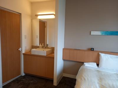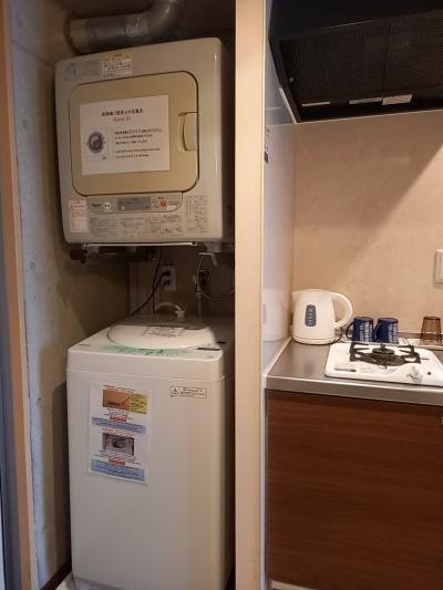 洗濯機と乾燥機が部屋にあるところを探していたら見つけました。牧志駅から歩いて近いところです。ホテルの受付の他にも出入り口があり、暗証番号を打ってドアを開錠します。部屋に入る時も同じ暗証番号を打って鍵が開きます。ということで、ルームキーはありません。ベランダがあり、開放的です。電子レンジあります。食器類は有料です。チェックインすると洗濯洗剤をくれます。スリッパは使い捨てのものではありません。風呂に手桶や洗面器はないので、湯船のお湯をすくうことはできません。間接照明で、それも電球色の暗めなので好き嫌いが分かれるかもしれません。シーツの色が黒?濃紺?なのが気になりました。白いシーツに慣れているので…。