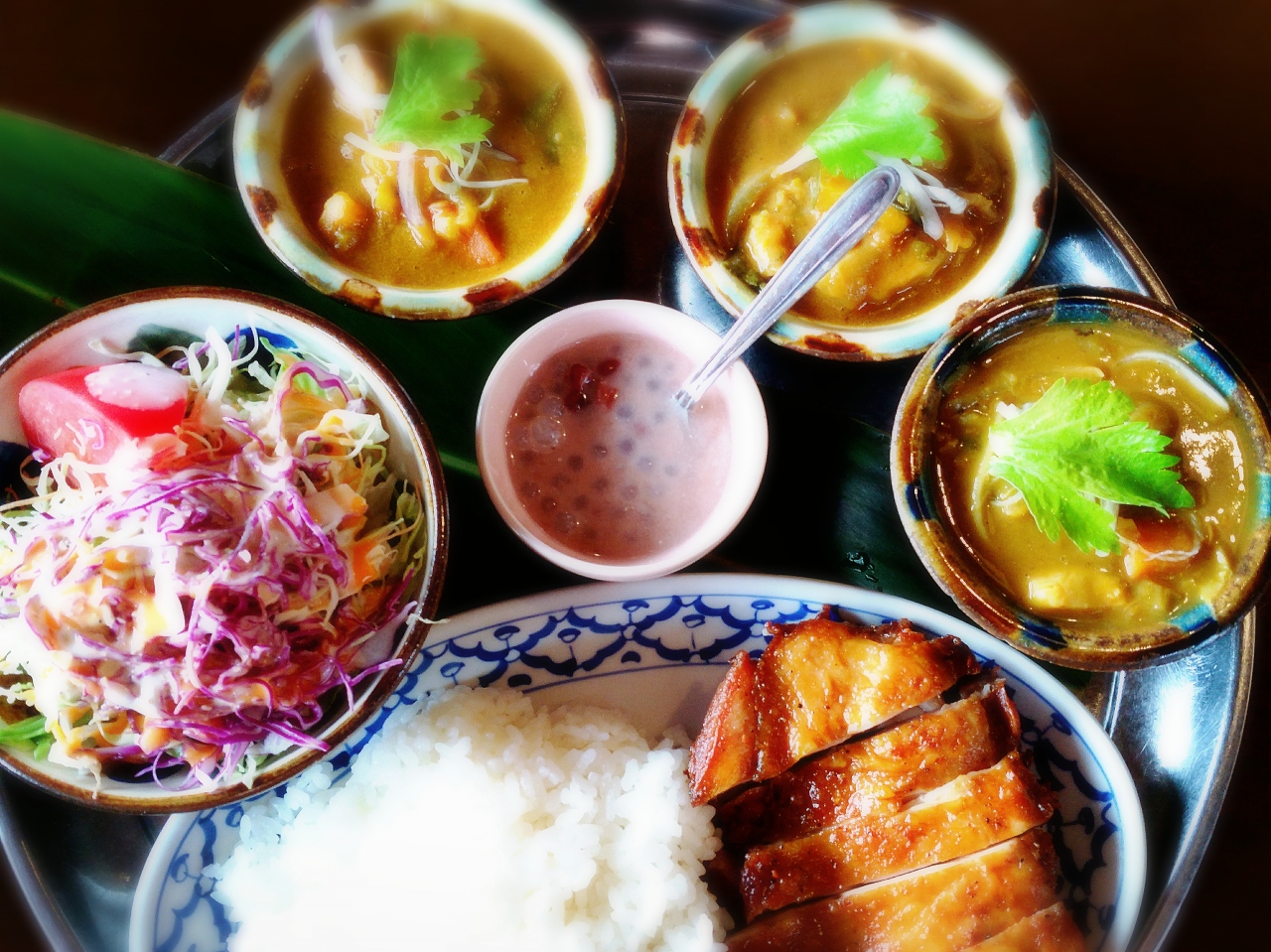 朝食は1階のレストラン。自分で海鮮丼を作ったり、スープカレーが
