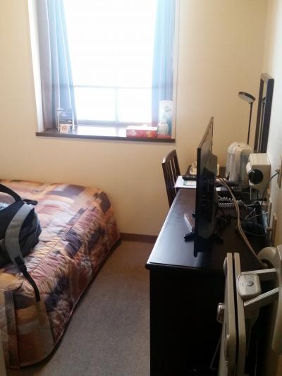 部屋はけっこう広く窮屈感はない。この部屋の広さからしてはテレビが小さかったです。