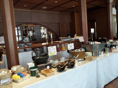 朝食付で、場所は宴会場。結婚披露宴の場所を朝食会場にしているようです。
