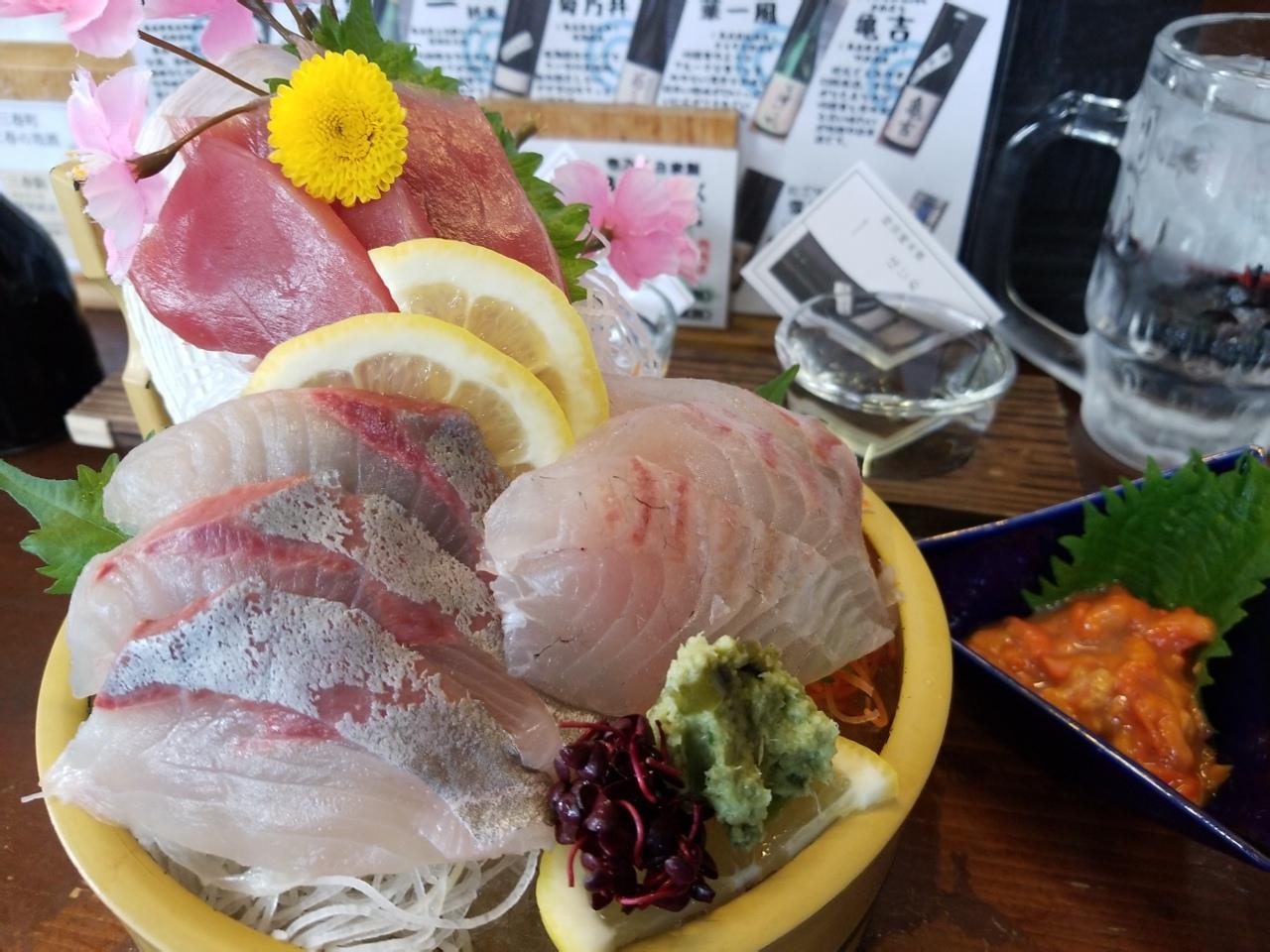 予約をしないと入れないとあったのですが、たまたま空いていました。でも、予約した方がよさそうな人気店のようです。店内は冷房がさほど効いていないので、正直暑いです。外は湿度高く蒸し暑かったので、冷房ガンガンの中、オリオンを飲みたいと思っていたのですが…。まぁ、慣れちゃいますけどね。刺身も旨かったです。