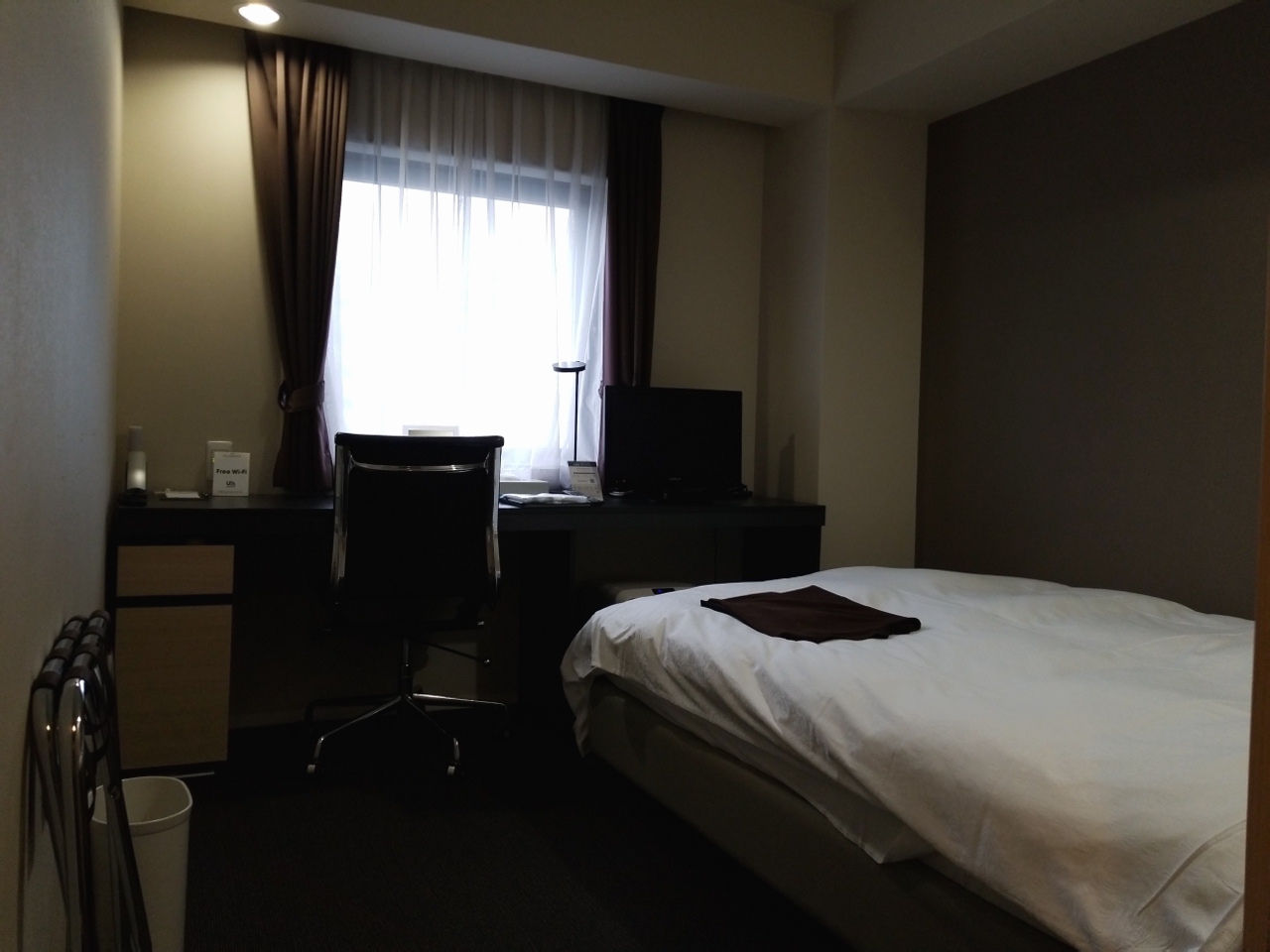 ツアーで利用しました。札幌駅からは歩いて苦にならない距離です。ロビー階からエレベーターに乗るには、カードキーをかざさないと扉が開きません。エレベーターの中に入ってしまえば、カードキーは使わず行きたい階のボタンが押せます。チェックアウトは、ロビーにある機械で処理できます。部屋には加湿機能付き空気清浄器もあり、枕元にコンセントもあります。窓も開きました。バスタブが少し大きい感じがしました。ベッドも私には合いました。