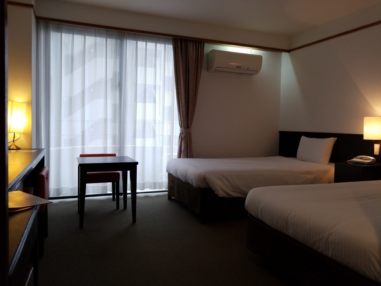 一泊泊まってみました。今回は羽田からの最終便で那覇入り。翌日は別のホテルに泊まることになっていたので、取りあえず夜寝られればいいかなぁということで、安いところを探しました。おもろまち駅からはちょっぴり歩きます。すぐ近くに大型スーパーがあります。ベッドはロフトになっているのですが、けっこう急な階段です。ベッドからテレビが見られるようになっているので、下の机に座っていると見えません。風呂はシャワーのみ。シャワーカーテンがありますが、隣りのトイレも床はビショビショになります。無料のスマホがありました。今回はアメニティ付きでしたが、付いていないプランもあるようです。トイレが洗浄機付きではなかったのが残念です。