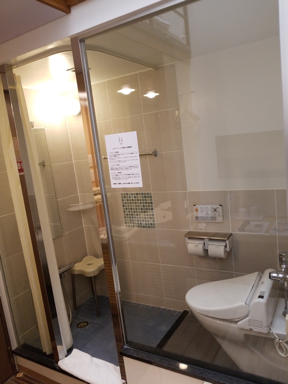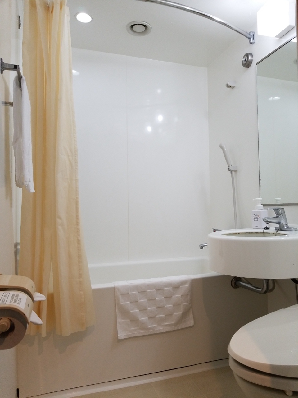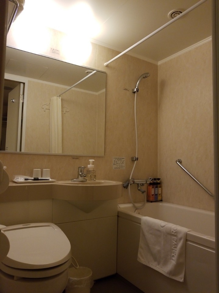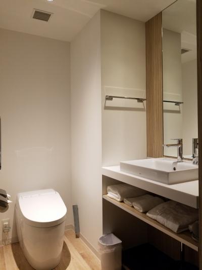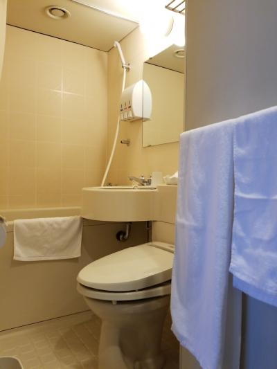 部屋は、浴室とトイレが別になっているので、家のお風呂に入っているようでゆっくりできます。アメニティは歯ブラシだけ洗面所にあり、その他はすべてフロントの横にあり、自分で必要なものを取ります。