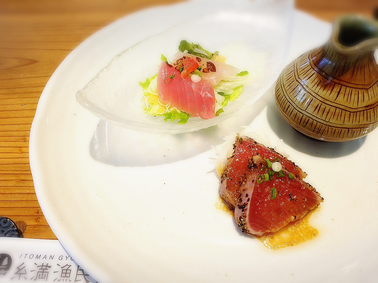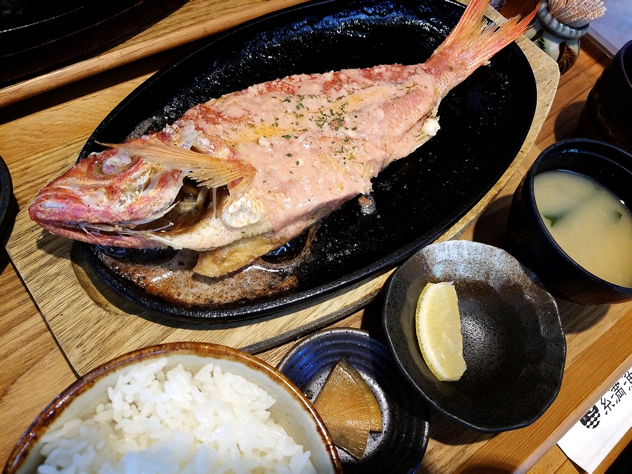 11時半からのオープンでした。10分くらい前に行ったら、すでに行列…。どうにか第一陣の群れで入れました。魚がたくさん種類があり、迷ってしまいます。本日のおすすめメニューの一番最初の高い物を注文してみました。旨いです。魚をこんな味付けで食べるのもいいもんだなぁと思わせてくれます。刺身に飽きた時にはいいかもしれませんね。