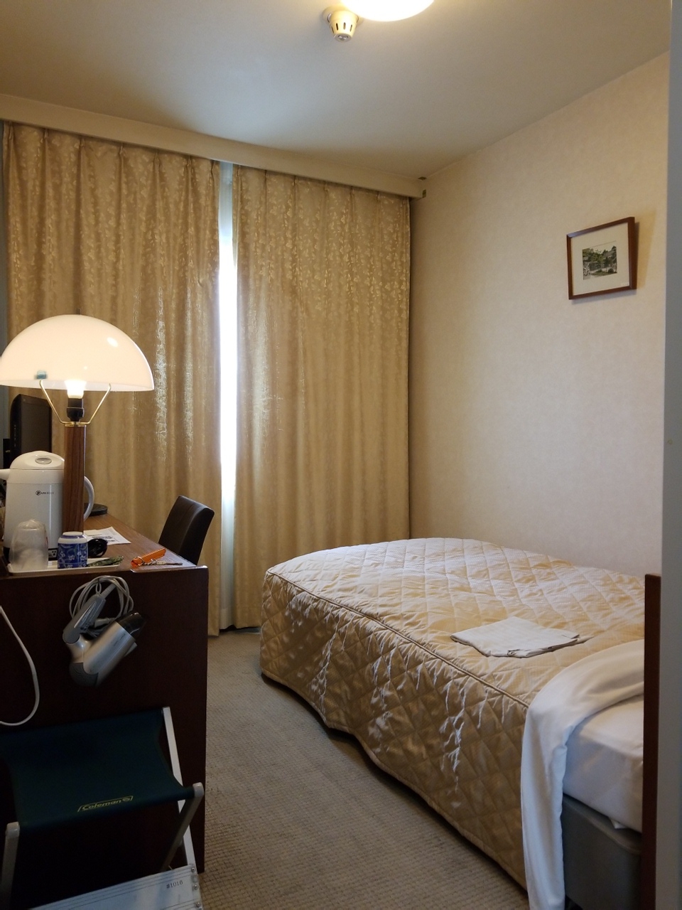 シングルを予約したのですが、ダブルな感じでした。駐車場は無料で満車になることはないんじゃないかなぁってくらい広いです。部屋はスタンダード感じで、空気清浄器、消臭スプレーもありました。スリッパが使い捨てだと嬉しいなぁ。宿泊者はホテルの裏にある銭湯みたいなところが利用できます。ただ、カランが4つしかなくて、つかも2畳?くらいしかないので、カランが空くまで待つ場所もありません。受付の人が、今何人入ってますから少し待ってくださいとか言ってくれます。