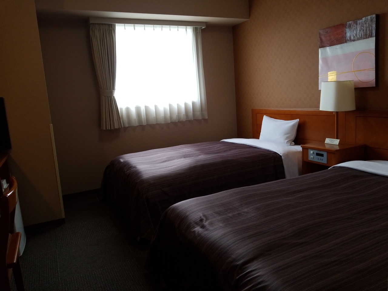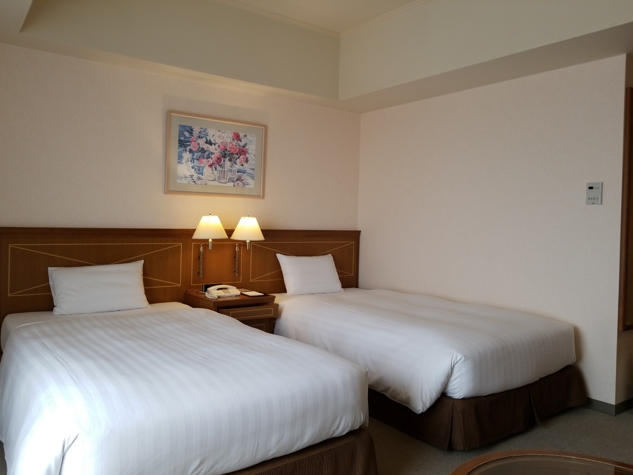 父との二人旅。シングル2部屋をお願いしていたら、ツイン2部屋にしてくれていました。部屋はとても広くてさすがです。加湿器は貸し出しでした。テレビは大きいのですが、部屋が広いので、べっどに横になって見るには遠かったです…。枕元には延長コードが引っ張ってありました。景色も良くて、父も喜んでくれました。駐車場は1泊1,200円。入庫から24時間この料金で停めておけます。