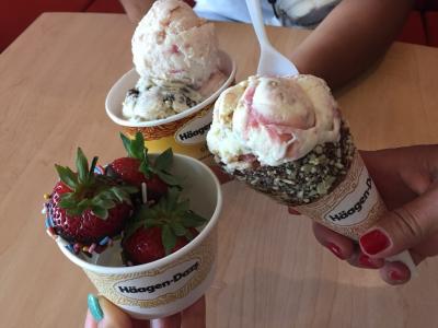 繁華街から少し離れていますが ホテル内にはハーゲンダッツ、コンビニ、レストランがあり食事に関しては困らないと思います。