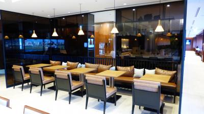 ラウンジ内は、全体的に大きな窓に面しており、空港内のランプや滑走路、街の風景が見られる開放感のあるラウンジに生まれ変わっていました。- 旅行時期