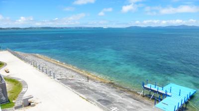 濃い青と水色のコントラストが奇麗な海と、平安座島などが一望できます。