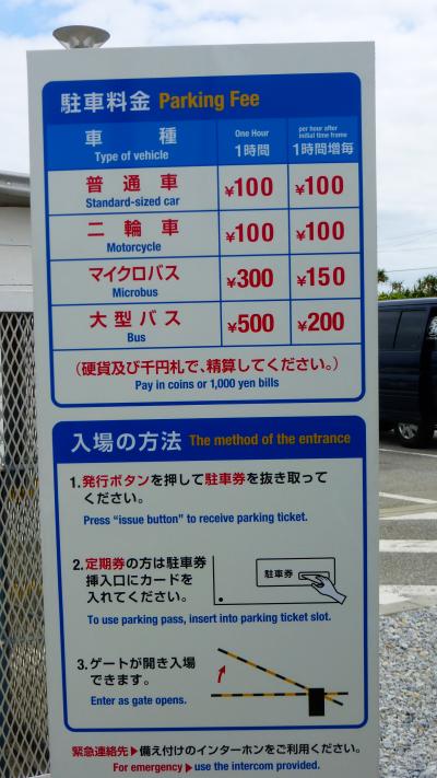 真栄田岬の手前に有料駐車場がありますが、ちょっと見に行くだけであれば、駐車料金は100円で済みます。
