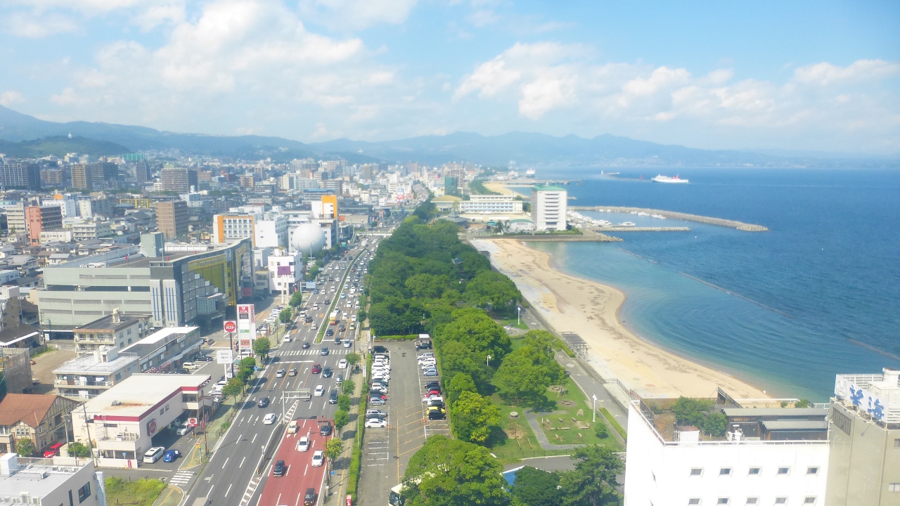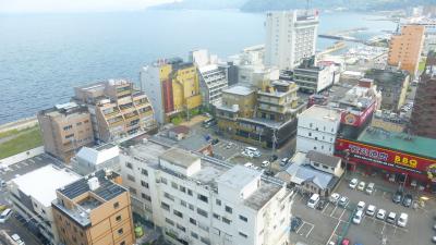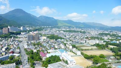 チェックインの際に高層階を希望した所、一般階の最上階(12F)にして貰えた為、部屋の窓からの山側の眺望は良く、鉄輪温泉の湯けむりも見えました。