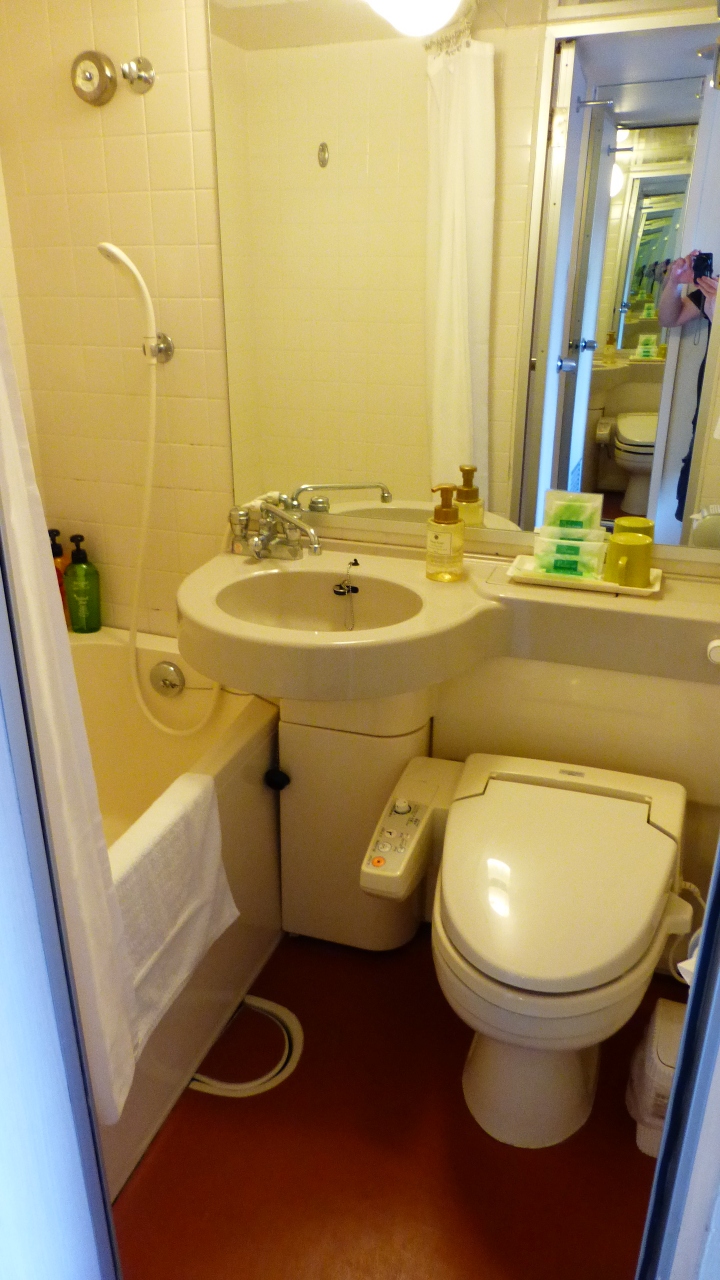 - 部屋のは格安ビジネスホテル風の狭めのユニットバスだが、温泉付き大浴場(露天風呂も)があるので問題なし