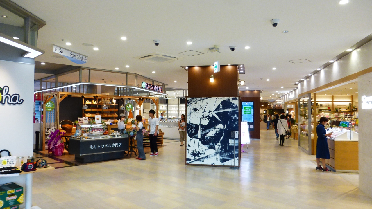 コンコースを挟んで、駅構内(1F)の南北に、「えきマチ1丁目」と言う名称の商業施設があり、土産物店、飲食店、カフェ、コンビニ、フードコートなどがあり、南側エリアには、飲食店、ドラッグストア、百均、本屋、スーパーマーケットなどが入っていて便利です。
