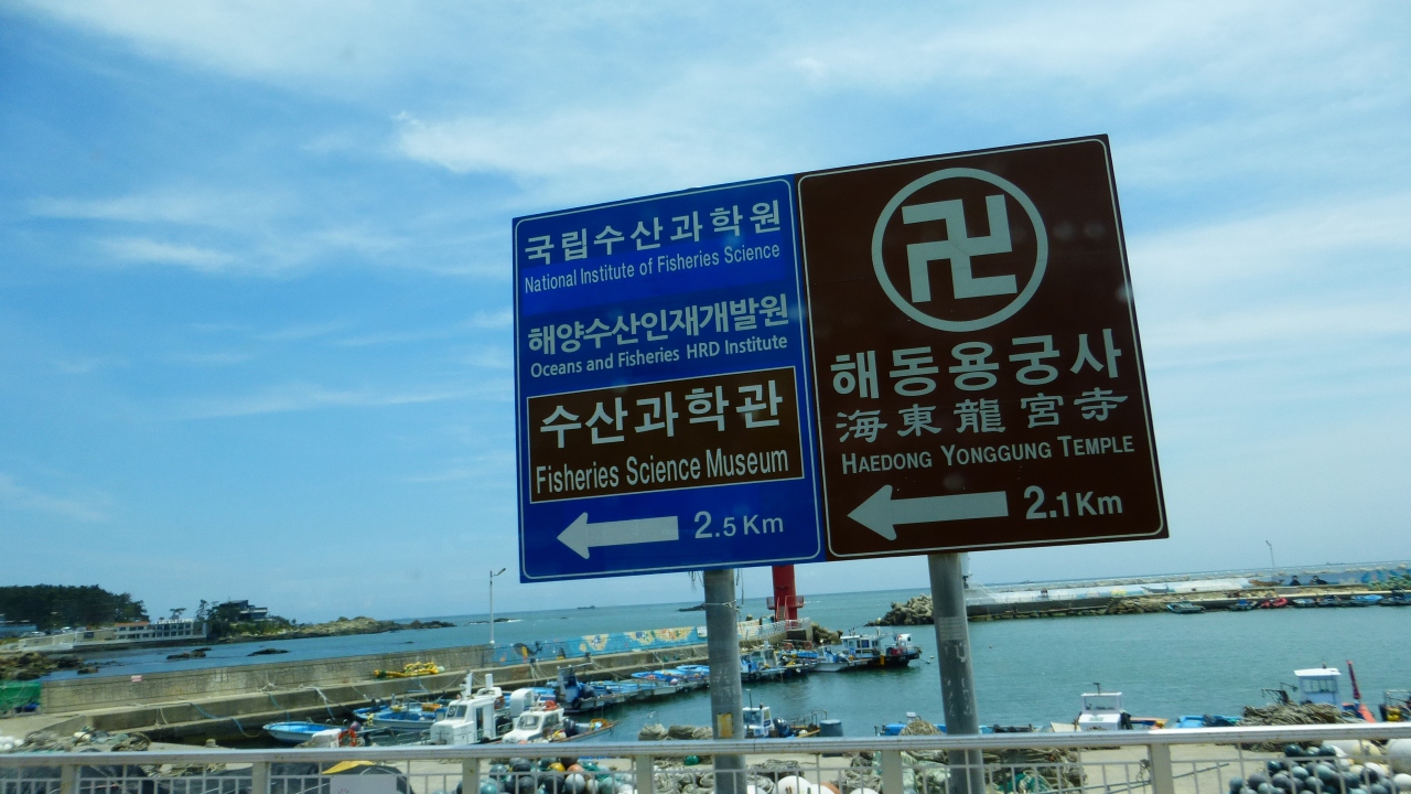 海雲台駅のバス停で181番バスを待っていたら、9番バスが停まってフロントガラスに「海東龍宮寺」を書かれた紙が貼ってあったので、ドライバーに訊くと、これでも行けると言われたので9番バスに乗って行きました。