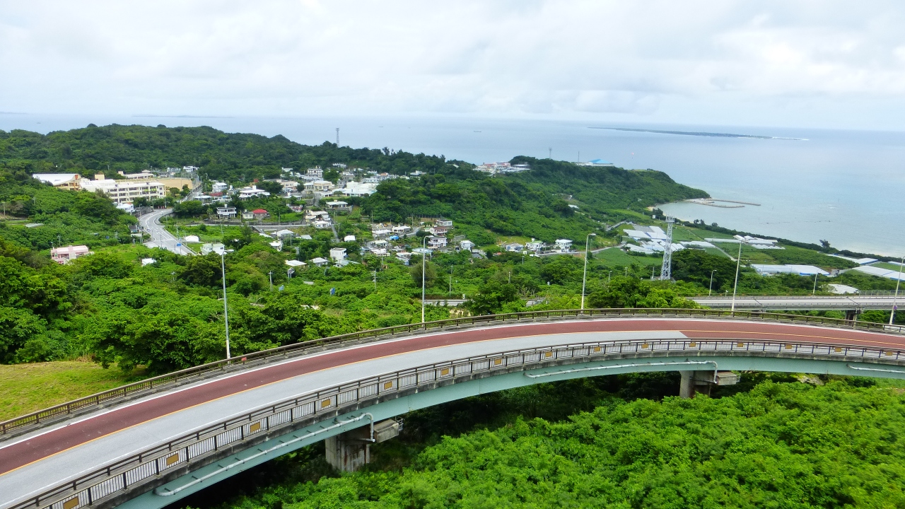 「二ライ橋カナイ橋」を下りながら海を眺めるのも良いのですが、下りで「二ライ橋カナイ橋」に入る手前にあるトンネルの上が展望所になっています。